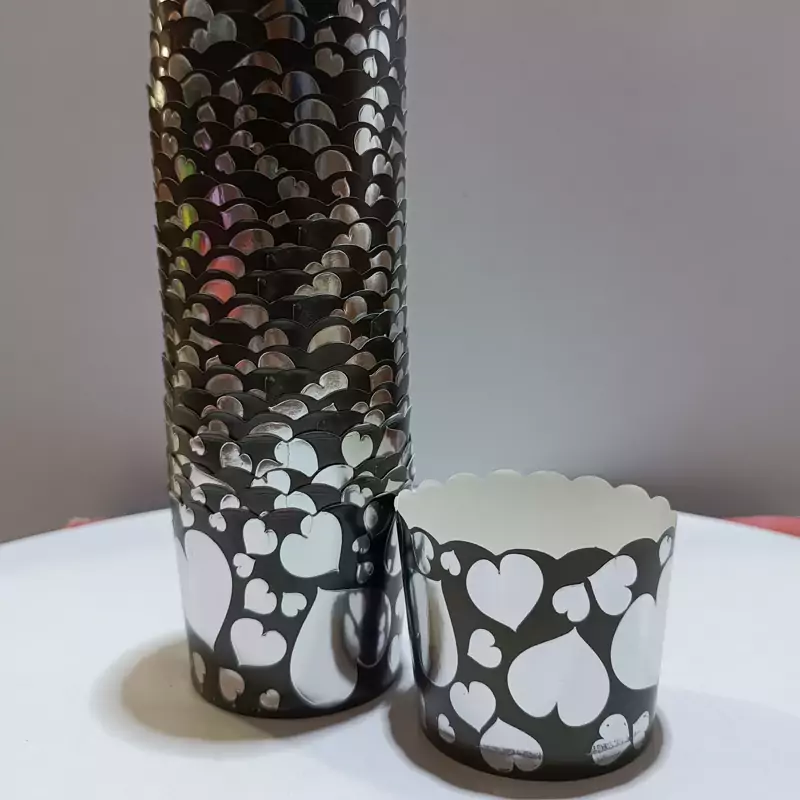 کاپ کیک گرد لیزری طرح قلب بزرگ و کوچک رنگ نقره ایی پک 10تایی
