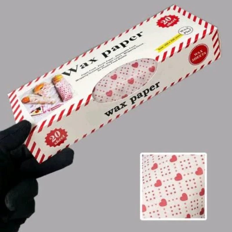 وکس پیپر کاغذ روغنی طرح قلب و نقطه 20 برگی کاغذ ساندویج طرح قلب لوزی(هر بسته حاوی 20 برگ 25 در35 سانت)