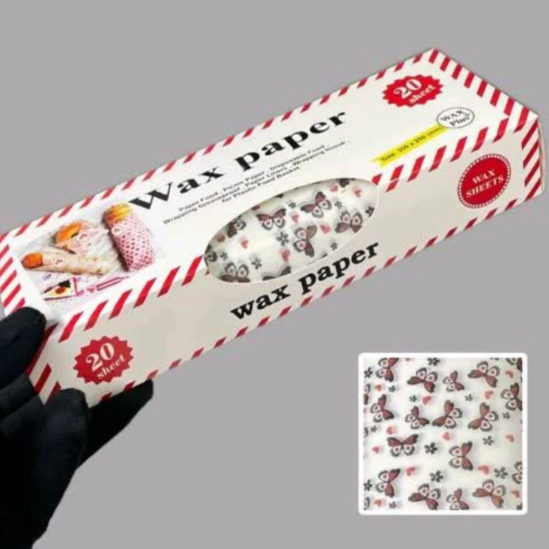وکس پیپر کاغذ روغنی طرح پروانه 20 برگی کاغذ ساندویج طرح پروانه (هر بسته حاوی 20 برگ 25 در35 سانت)