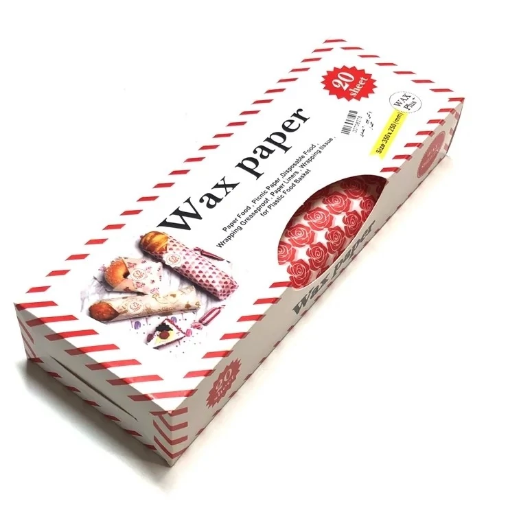 وکس پیپر کاغذ روغنی طرح گل رز 20 برگی کاغذ ساندویج طرح گل(هر بسته حاوی 20 برگ 25 در35 سانت)