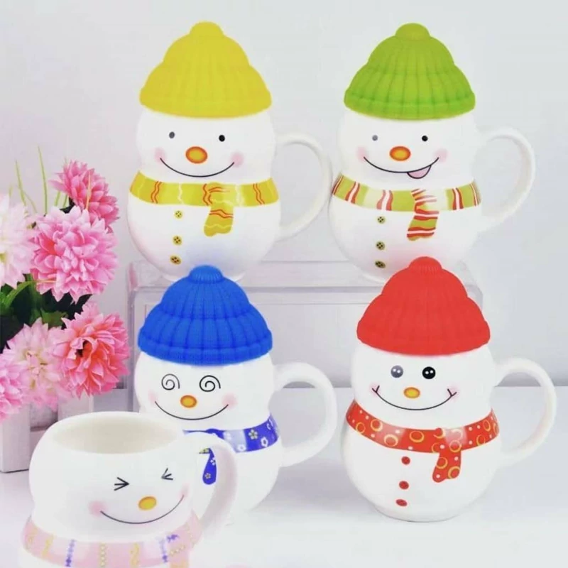 خرید با قیمت ارزان ماگ سرامیکی طرح آدم برفی جنس سرامیک با درب سلیکونی محصول وارداتی بسیار با کیفیت دارای جعبه کادویی