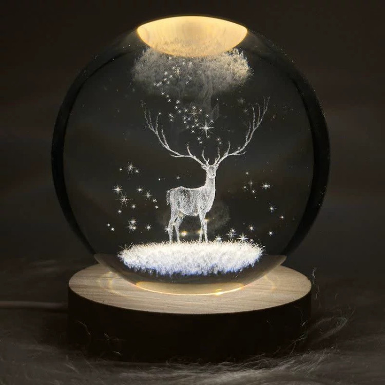 چراغ خواب شیشه ای 3 بعدی گوی شیشه ای طرح گوزن