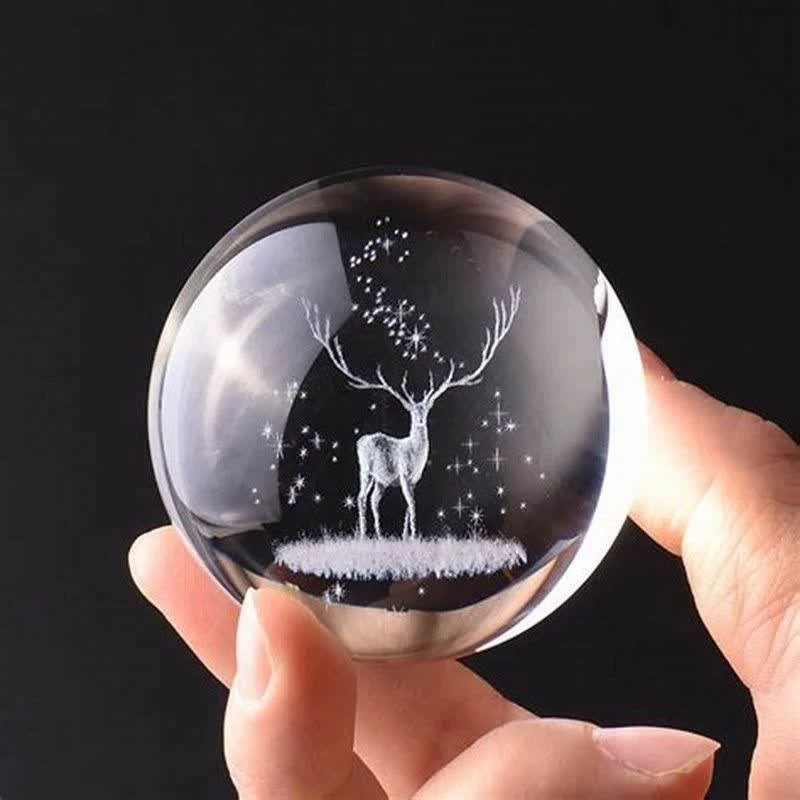 چراغ خواب شیشه ای 3 بعدی گوی شیشه ای طرح گوزن
