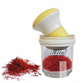 جنس: پلاستیک، شیشه، توری فلزی ابعاد: 7.5×7.5×14 سانتی متر سایر توضیحات: توری ثابت را روی لیوان قرار دهید و رینگ مخافظ را روی توری ثابت نصب کنید و توری متحرک را روی هاون قرار دهید و دقت کنید که توری متحرک کاملا" با هاون فیکس شود. اینک مقدار مناسبی زعفران (حدود پنج گرم یا یک مثقال) را در توری ثابت بریزید و هاون همراه با توری متحرک را روی زعفران ها قرار دهید و با چرخاندن هاون روی زعفران ها و یا حرکت چپ و راست سائیدن زعفران را انجام دهید و اینکار را تا پودر شدن تمام زعفران ها ادامه دهید. سپس برای نگهداری و یا دم کردن زعفران رینگ مخافظ و توری ثابت را برداشته و درب پلاستیکی را روی لیوان شیشه ای قرار دهید.