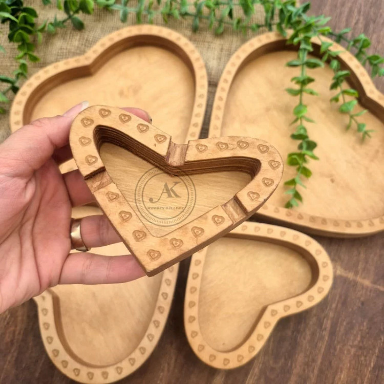 خرید با قیمت ارزان ست پذیرایی 5 پارچه چوبی طرح قلبی