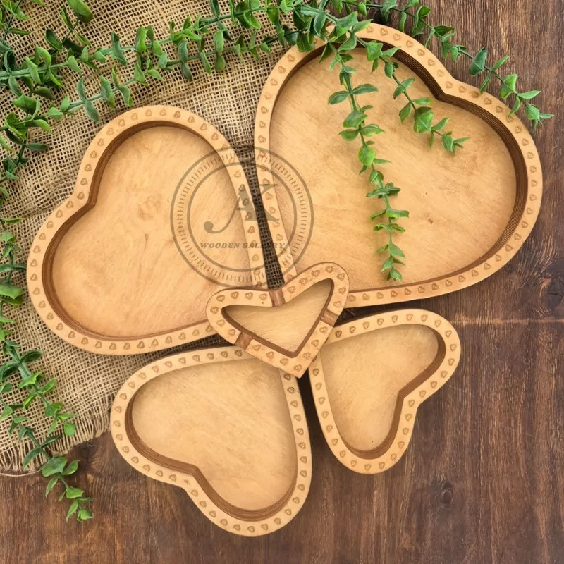 خرید با قیمت ارزان ست پذیرایی 5 پارچه چوبی طرح قلبی