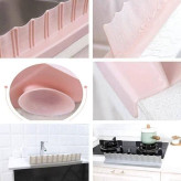 طول: 48 سانتی مترارتفاع: 9 سانتی مترجنس این آبگیر از سلیکون است که یک نوع پلاستیک مقاوم و دارای قابلیت انعطاف است.این آبگیر در چند رنگ مختلف موجود است که بر حسب سلیقه خانم ها برای آشپزخانه قابل استفاده است.مانع از پاشیدن آب سینک در طول شبانه روز می شود و نقش محافظتی برای حفظ کابینت ها، موکت، فرش و وسایل شما دارد.