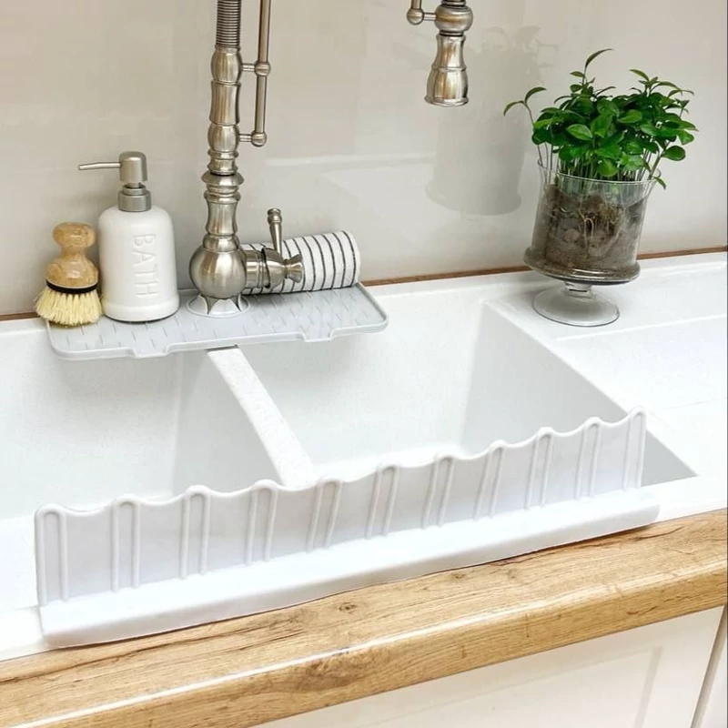 طول: 48 سانتی مترارتفاع: 9 سانتی مترجنس این آبگیر از سلیکون است که یک نوع پلاستیک مقاوم و دارای قابلیت انعطاف است.این آبگیر در چند رنگ مختلف موجود است که بر حسب سلیقه خانم ها برای آشپزخانه قابل استفاده است.مانع از پاشیدن آب سینک در طول شبانه روز می شود و نقش محافظتی برای حفظ کابینت ها، موکت، فرش و وسایل شما دارد.