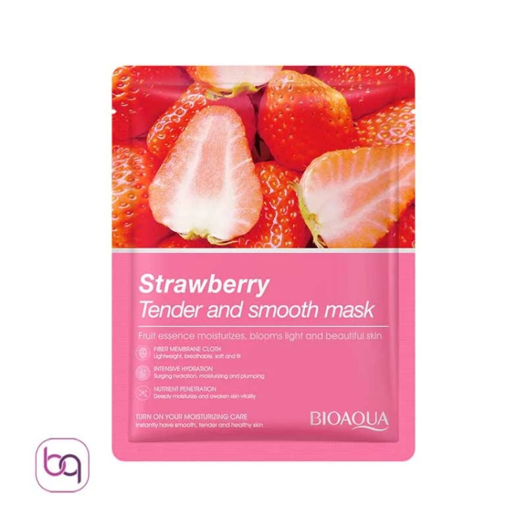 ماسک ورقه ای صورت توت فرنگی بیوآکوا پاکسازی و لایه برداری از پوست صورت جلوگیری از پیری زودرس پوست صورت رفع جای جوش