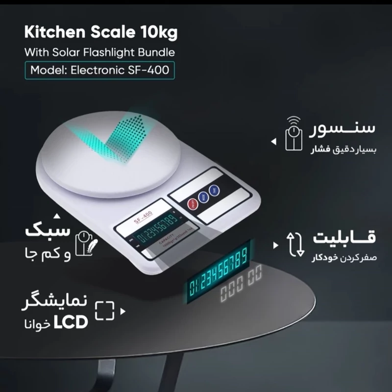 ترازو آشپزخانه sf400 وارداتی درجه 1 خاموش شدن خودکار در زمان عدم استفاده دارای پارسنگ(Tare) تحمل وزن تا 10 کیلوگرم دقت بسیار بالا و عالی بدون افت کیفیت تغذیه باطری قلمی