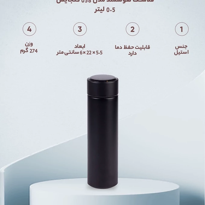 سلام.. فلاسک درجه دار در رنگ مشکی و سفید با قابلیت نگهداری دمای گرم و سرد… باتری درجه 1 و جنس داخل استیل 304 مناسب برای محل کار