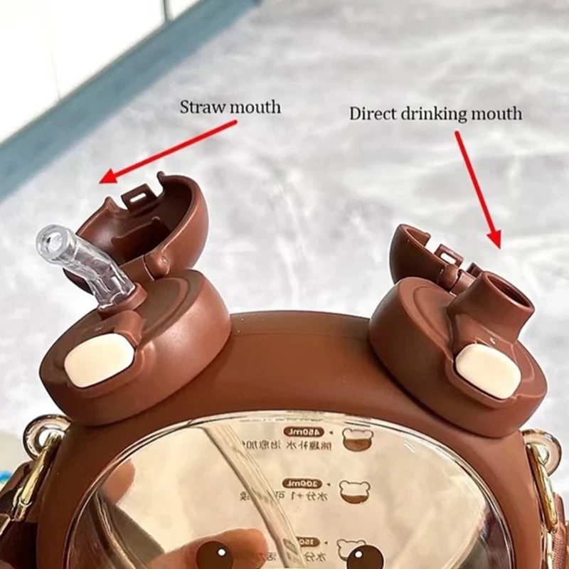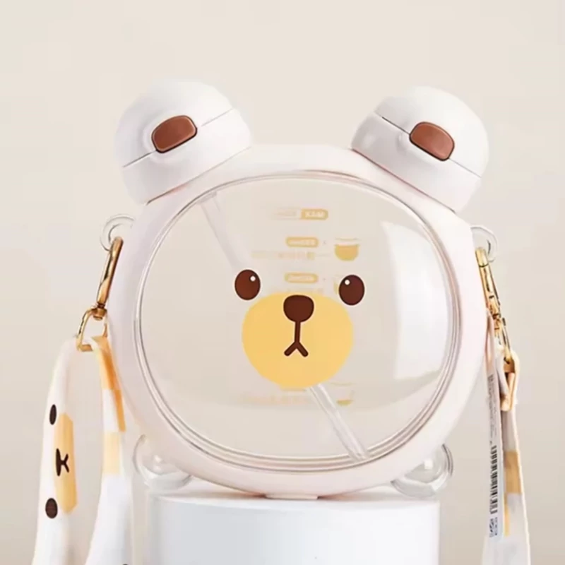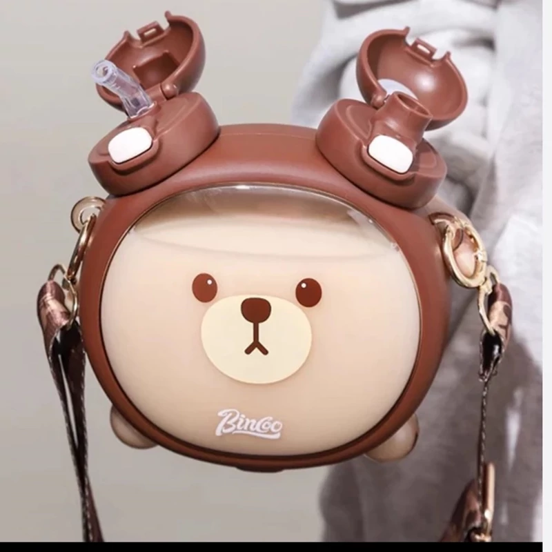 سلاممم… قمقمه کودک خرسی بند دار دو گوش وارداتی اصلی دارای دو درب( نی و آسان نوش) مناسب بچه های خوش ذوق شما دارای نی و بند