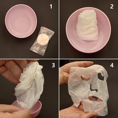 جنس پنبه و پارچه ابعاد 20×20 سانتی متر طریقه مصرف ابتدا صورت خود را تمیز کنید چون ماسک قرص ورقه ای روی پوست کثیف هیچ تاثیری نخواهد داشت سپس یک قرص ماسک را در ظرف قرار دهید و محلول مورد نیاز (آب یا شیر) را اضافه کنید، همچنین می توانید سفیده تخم مرغ، خیار، گوجه فرنگی، سیب زمینی و روغن زیتون را نیز اضافه کنید و صبر کنید تا ماسک کاملا مواد را جذب کند، سپس ماسک را روی صورت قرار دهید و به آرامی ماساژ دهید تا به خوبی جذب پوست شود، مدت زمان استفاده از این ماسک قرص ۲۰ الی ۳۰ دقیقه است و بعد از آن صورت را با آب بشویید. سایر توضیحات جذب بسیار بالا مواد نیاز به مقدار کمی آب دارای بافتی نرم و بدون بو کاملا بهداشتی و بدون حساسیت در حالت معمولی به شکل قرص می باشد بزرگ شدن سریع دستمال پارچه ای و بدون نیاز صرف وقت زیاد دارای ویژگی های خاصی از قبیل جذب، دفع مایع، انعطاف پذیری، نرمی، کشش، قابل شستشو، عدم جذب باکتری و استریل می باشد
