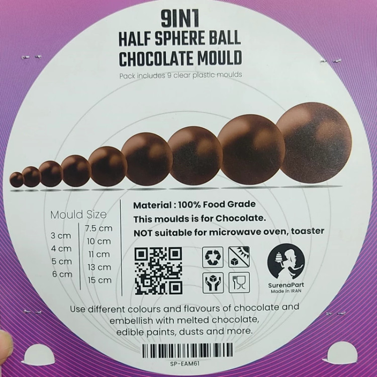 پک قالب ۹ تایی طلقی کروی برای گوی های شکلاتی و انارهای دیزاینی برای یلداسایزهاش