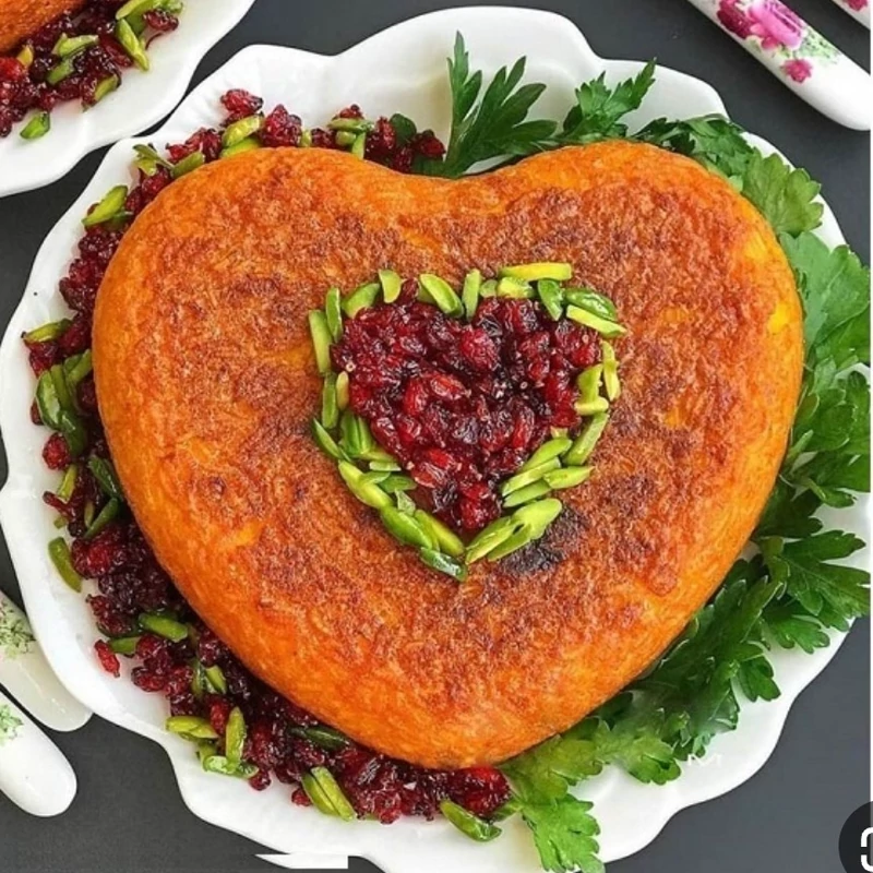 قالب ته چین درب دار طرح قلب گرانیت قالب کته عمق 5 و نیم و قطر حدود 16 سانت