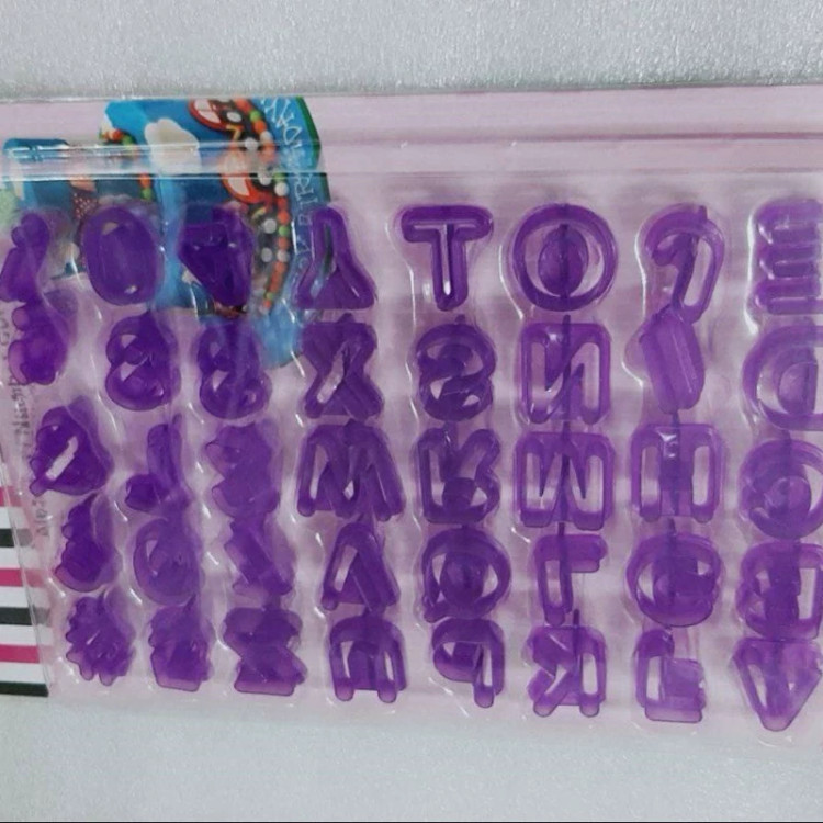کاتر حروف و اعداد انگلیسی پلاستیکی بنفش برای نوشتن اسامی دلبندانتای روی کیک و کوکی
