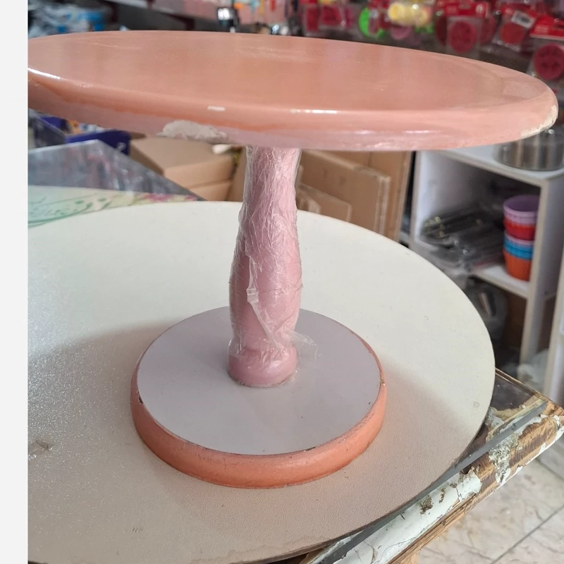 استند چوبی گلبهی معیوب قطر حدودا 26 سانت ارتفاع 20 سانت