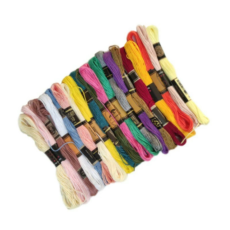 یکی از مهمترین ابزار برای شروع کار گلدوزی ، نخ می باشد.به نخ گلدوزی، به اشتباه دمسه هم گفته می شود.محصول حاضر مجموعه ای از 20 رنگ بسیار پرکاربرد (شامل سفید ، صورتی ، سبز ، کرم ، زرد ، قهو ه ای ، بنفش ، آبی ، نارنجی ، زرد و ...) در گلدوزی و کوبلن می باشد.لازم بذکر است تفاوت بسیار جزئی رنگ به علت عکاسی طبیعی می باشد.