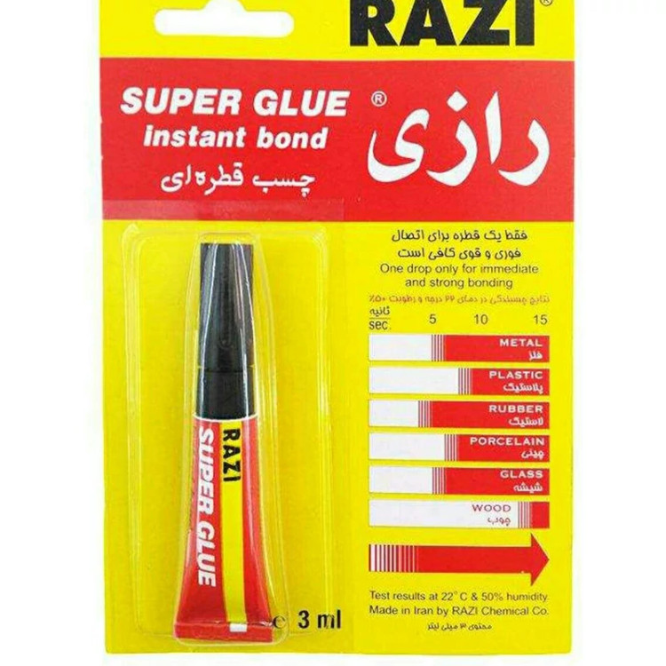 چسب مایع قطره ای سوپر رازی 3 میلی لیتری با قدرت چسبندگی بالا