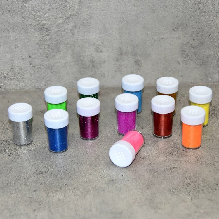 پودر اکلیل مدل شنی نمکدانی وزن 15 گرم مجموعه 12 عددی در رنگ های متنوع