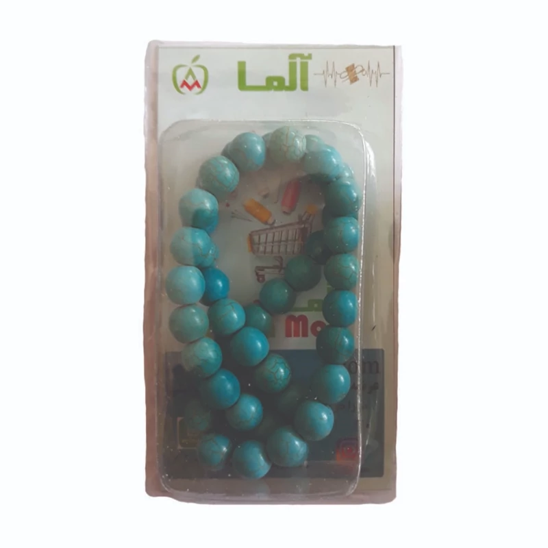 مروارید دستبند و گردنبند سایز 10 فیروزه سنگ (طرح سنگ) آلما (رگه دار)