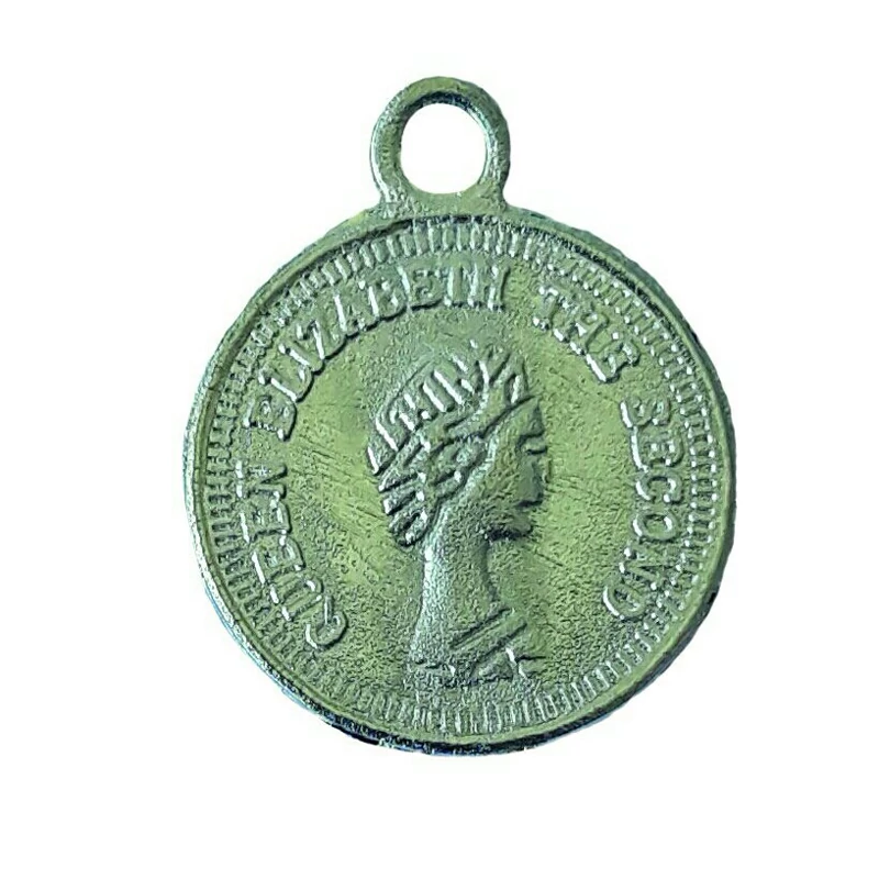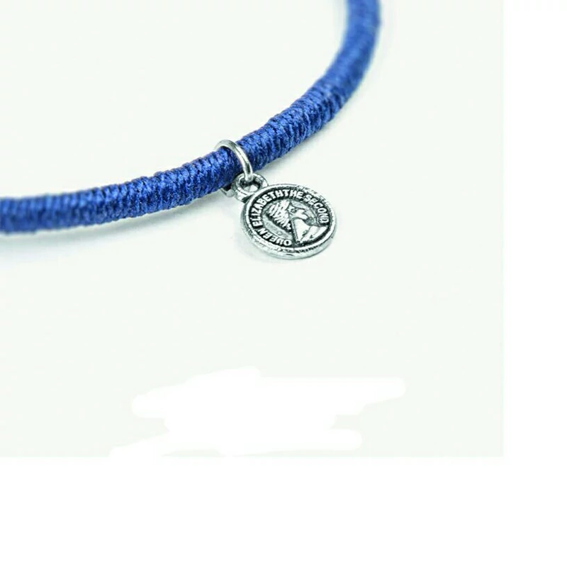 آویز دستبند فلزی ضد زنگ طرح سکه الیزابت کد HN1706 بسته 16 عددی به رنگ نقره ای