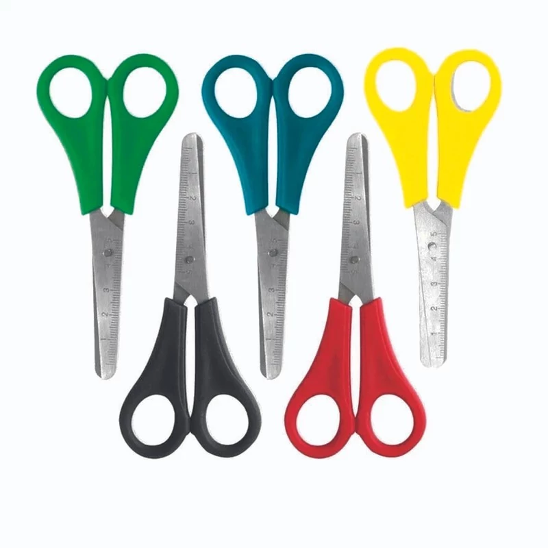 قیچی کاغذ چین مدرج بسته ۵ عددی (رنگبندی متنوع) /جنس دسته: پلاستیک جنس تیغه: استیل/ نوع برش: ساده