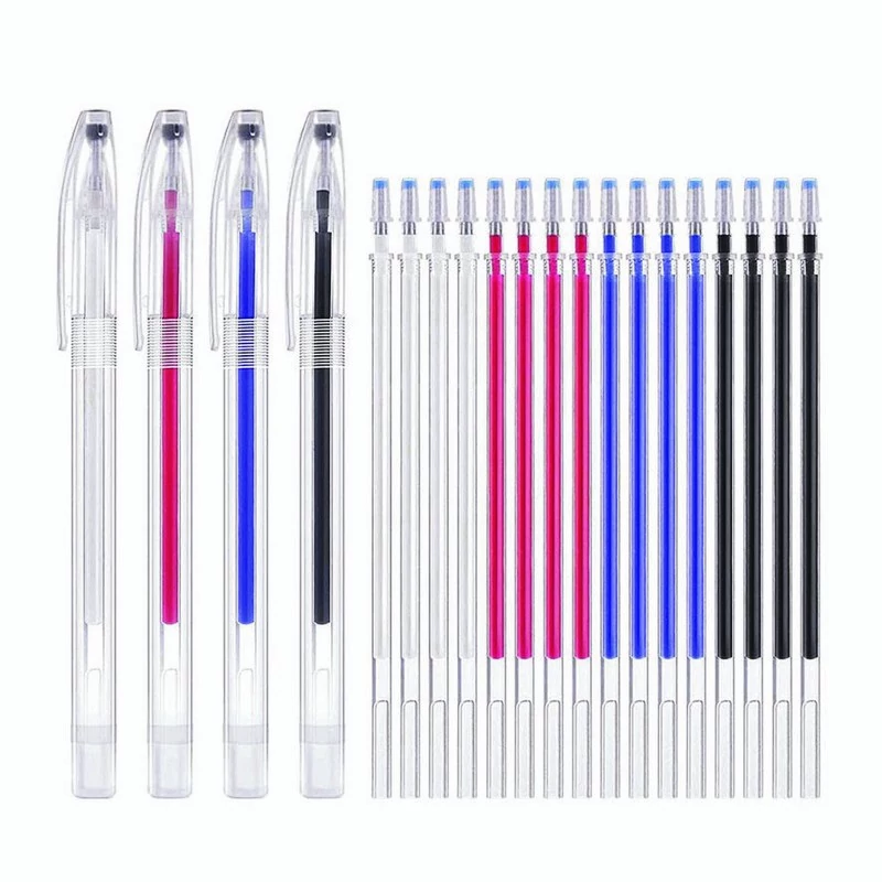 خودکار خیاطی محو شونده در 4 رنگ (قرمز، آبی، مشکی و سفید) این خودکارها با حرارت اتو یا سشوار یا شستشو پاک می شوند.