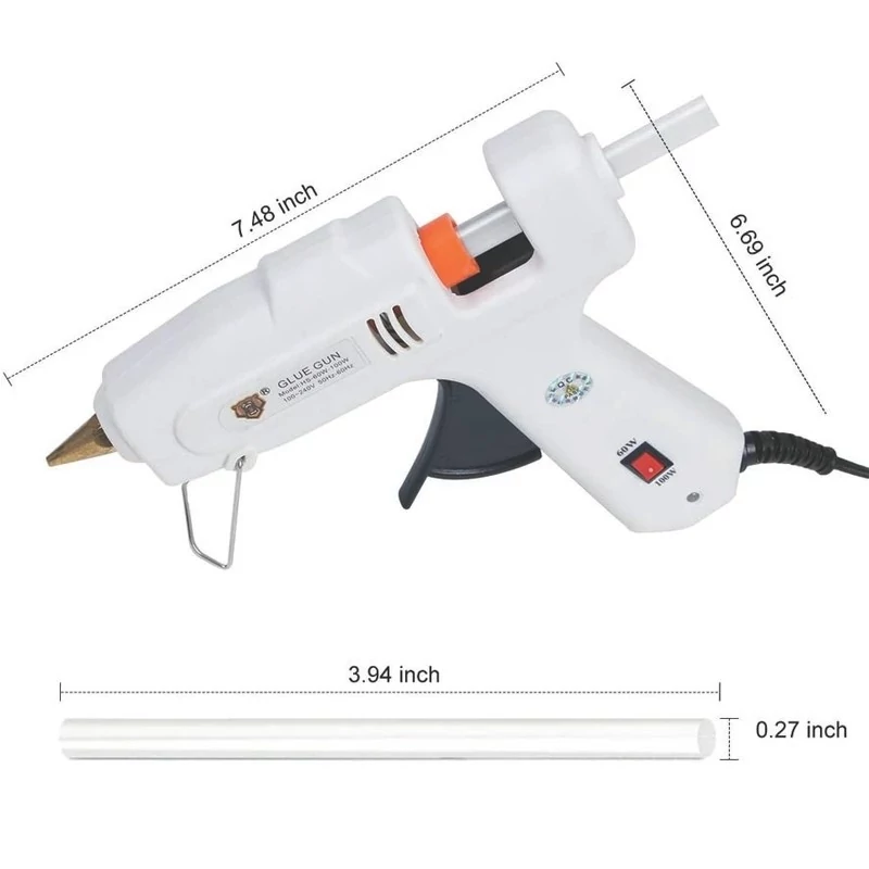 سایر توضیحات: دارای کیفیت بسیار قوی و کلید دو حالته 60 وات و 100 وات؛ چسب مورد استفاده 14 میلیمتر، سری بسیار قوی و دارای چراغ نشانگر وضعیت