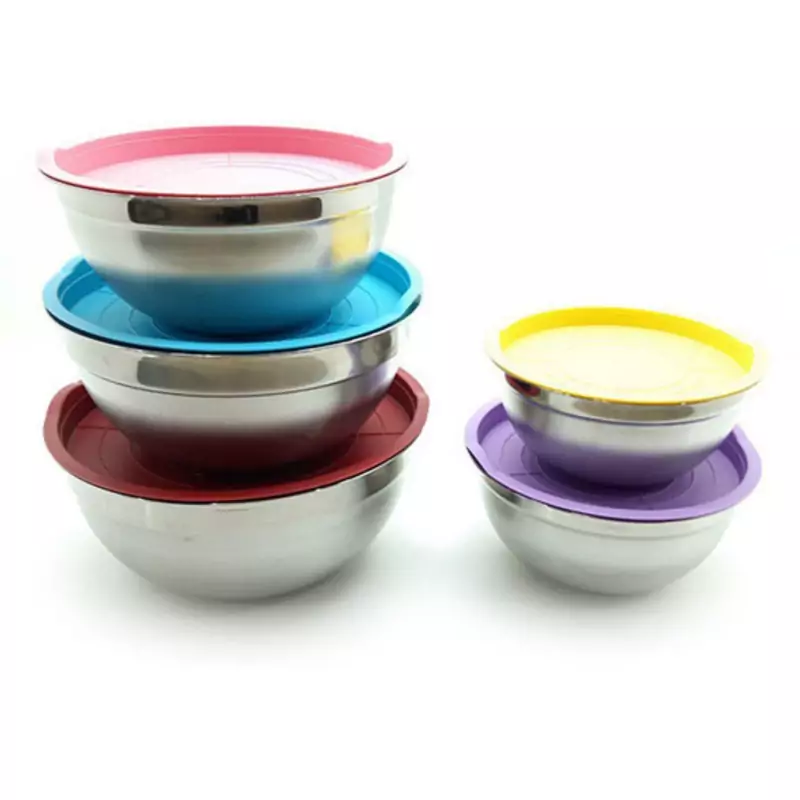 ست 5 عددی کاسه لگن درب دار رنگی استیل