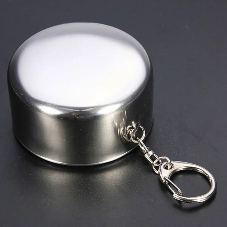 لیوان استیل تاشوی سفری ضد زنگ و درب دار و دارای قلاب آویز لیوان کوهنورردی تاشو