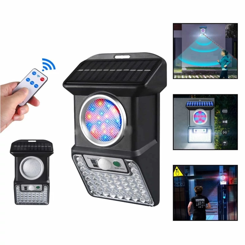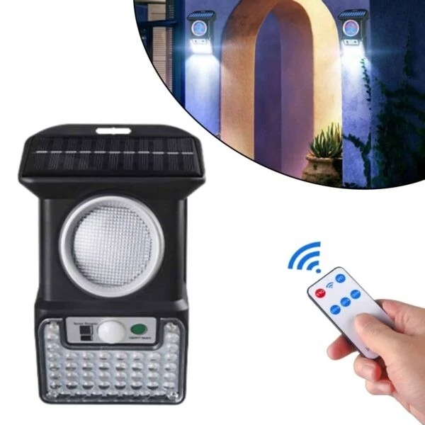 چراغ دیواری سنسوردار خورشیدی روشنایی هوشمند با ریموت کنترل و فلاشر هشدار