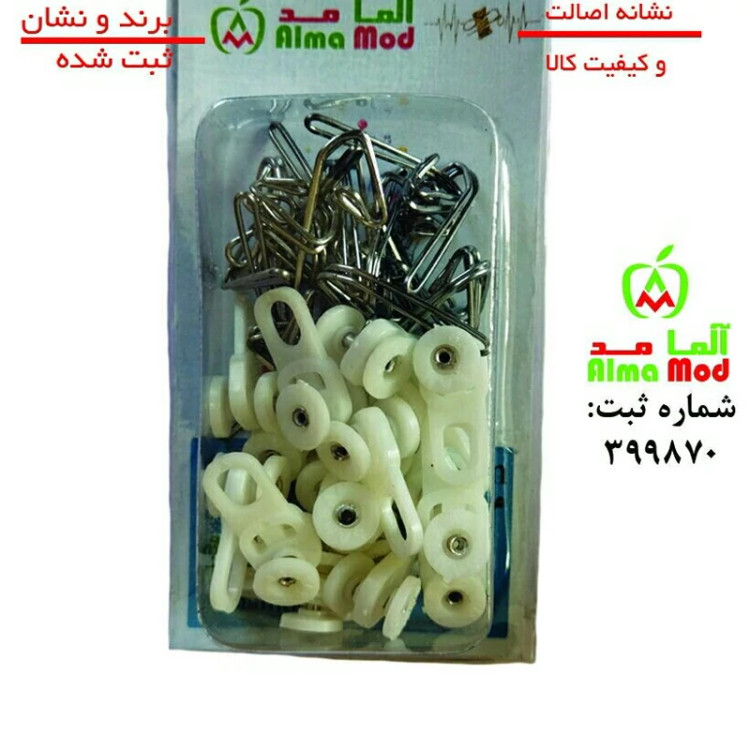 گیره پرده و هوکس فلزی آلما مد کد STE مجموعه 40 عددی