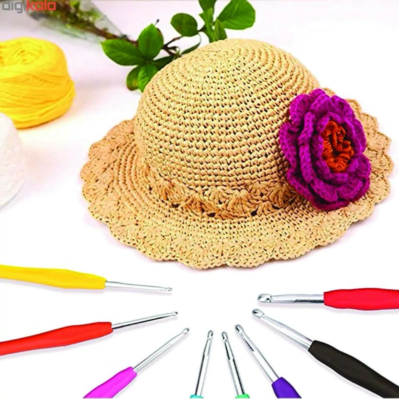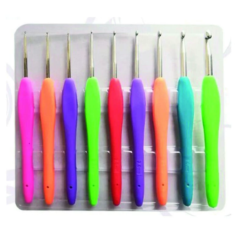 قلاب بافتنی دسته ژله ای بسته 9 عددی در 9 سایز متفاوت
