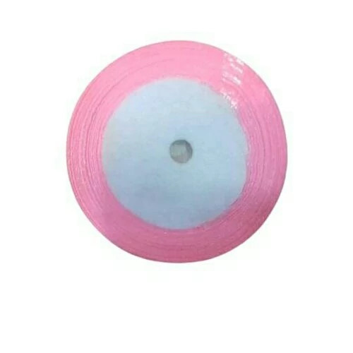 روبان ساتن نیم سانتی متری رنگ صورتی به طول حدود 33 متر