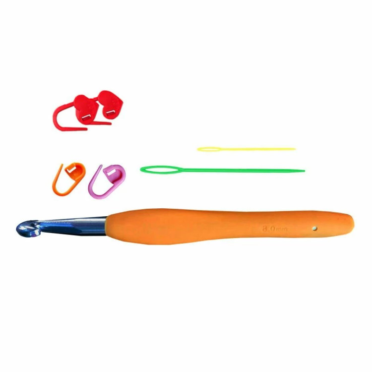 قلاب تریکو بافی دسته ژله ای شماره 9 مدل ZHL-8 به همراه سوزن کاموا و سنجاق نشانه گذار مجموعه 7 عددی