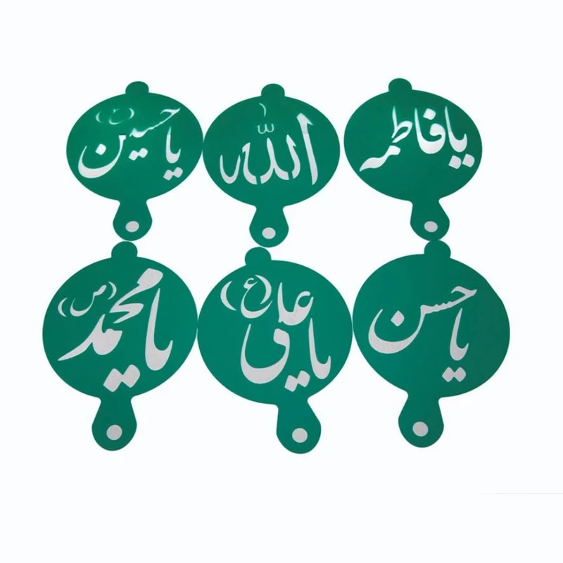 6 عدد شابلون نذری دارای 6 نام مذهبی پرکاربرد (الله، یا محمد ، یا علی ، یا فاطمه، یا حسن، یا حسین)