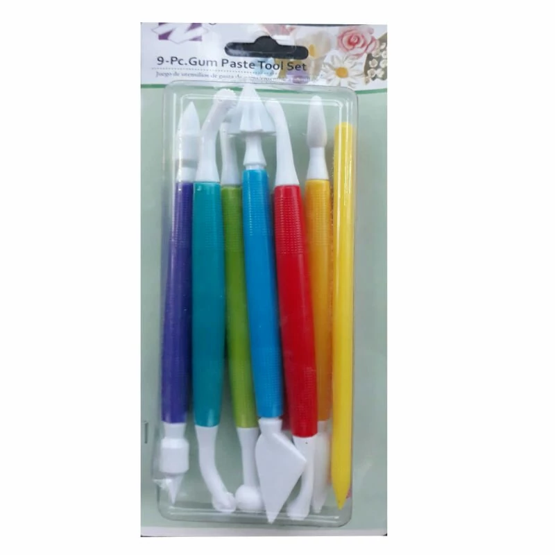 ۹ عدد ابزار دو سر (در مجموع ۱۸ شکل) جهت شکل دادن خمیر عروسک، ساخت انواع شکل ها با انواع خمیر ها برای طراحی و مجسمه سازی، برای کار روی کیک و شیرینی پرکاربردترین ابزار برای شکل های انواع خمیر در رنگ بندی مختلف است