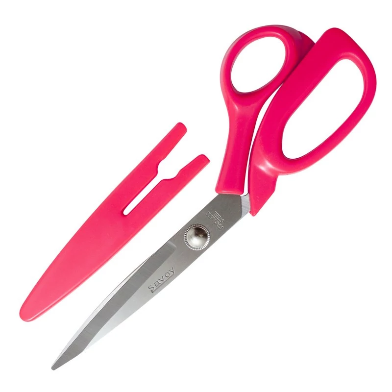 قیچی خیاطی Savoy مناسب برای برش پارچه، کاغذ، مقوا، نمد و غیره میباشد که میتوان در زمینه خیاطی مبتدی و حرفهای و کارهای روزمره از آن استفاده کرد. تیغه این قیچی دارای غلاف محافظ و از جنس استیل ضد زنگ و همچنین جنس دستهها از پلاستیک مرغوب میباشد