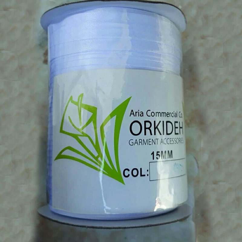 نوار اریب ساتن ارکیده رنگ سفید کد 15MM به طول 91 متر