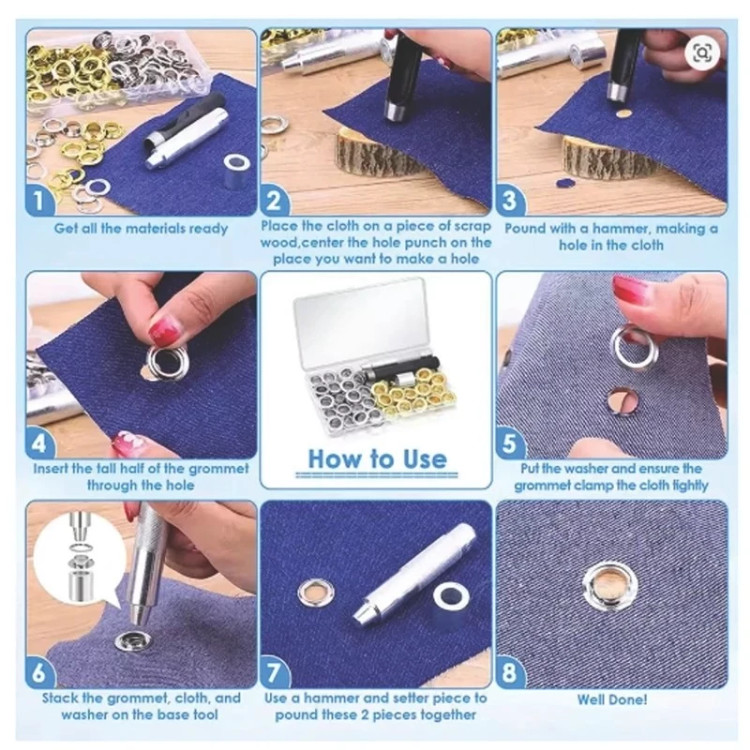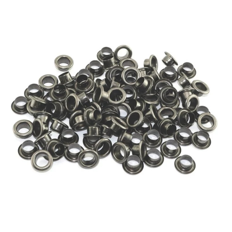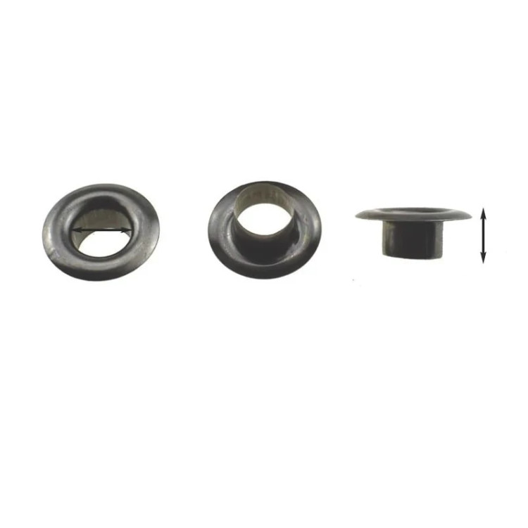 حلقه منگنه پانچی (مناسب برای انواع پارچه، لباس ، کیف و ...) رنگ این کالا دودی رنگ می باشد. سایز حلقه ایجاد شده با این سایز حدود 1 سانتی متر است. شامل حلقه و واشر پشتی مورد نیاز پرچ بوده بسته بندی 1000 عددی (حدودی) است.
