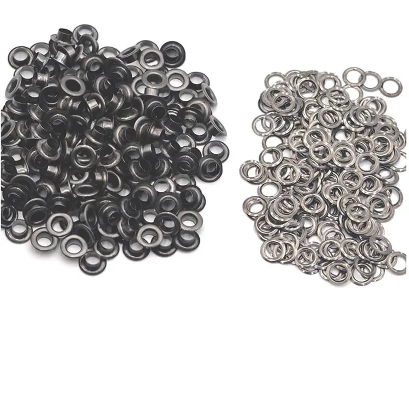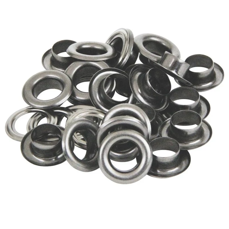 حلقه منگنه پانچی (مناسب برای انواع پارچه، لباس ، کیف و ...) رنگ این کالا دودی رنگ می باشد. سایز حلقه ایجاد شده با این سایز حدود 1 سانتی متر است. شامل حلقه و واشر پشتی مورد نیاز پرچ بوده بسته بندی 1000 عددی (حدودی) است.