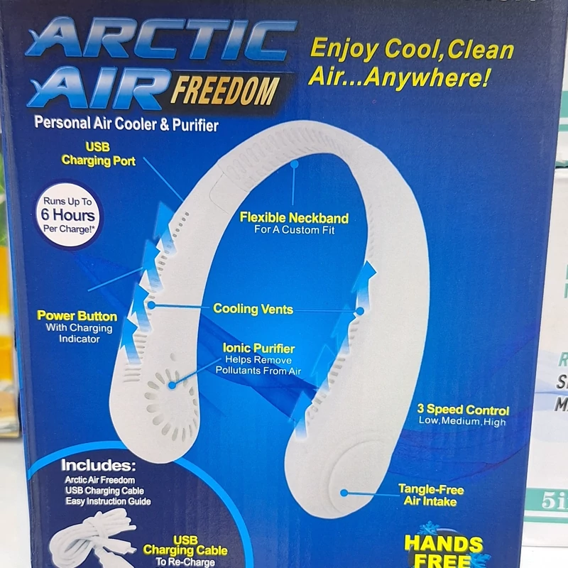 این پنکه شارژی گردنی به گونه ای طراحی شده که نیازی به استفاده از دست ندارید و دستانتان آزاد است فقط کافی است آن را بر روی گردن خود بگذارید و همچنین شما می توانید کارهای دیگر را همزمان انجام دهید. از ویژگی های دارای سرعت باد کم / متوسط / قوی قابل تنظیم ، همچنین می توانید زاویه های باد مناسب را برای رفع نیاز خود تنظیم کنید.