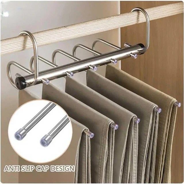 1. صرفهجویی در فضا: با استفاده از آویز شلوار جادویی، شما میتوانید فضای کمد خود را بهینه کنید و از فضای موجود به بهترین شکل ممکن استفاده کنید. این محصول به شما این امکان را میدهد که لباسهای بیشتری را در فضای کمتر نگهداری کنید.