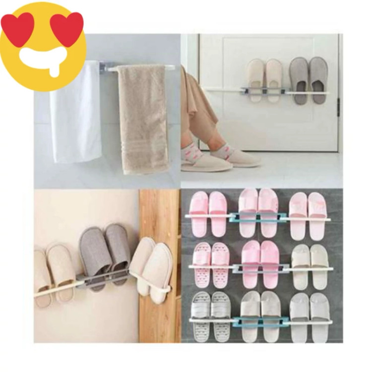 نگهدارنده دمپایی دیواری 3 تایی تاشو برای حمام و سرویس بهداشتی، (نگهدارنده حوله)