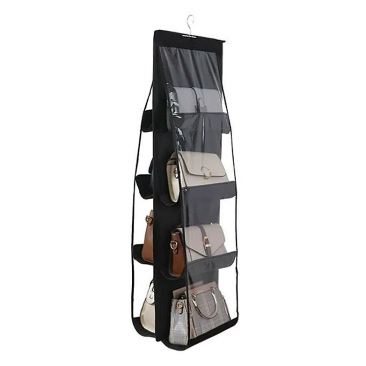 دارای آویز چوب لباسی کاهش فضای مورد نیاز برای نگهداری از کیف ها مانع از خراب شدن و یا از بین رفتن فرم اولیه سهولت در دسترسی و استفاده از کیف ها امکان آویزان کردن داخل کمد ، روی دیوار ، پشت درب و …