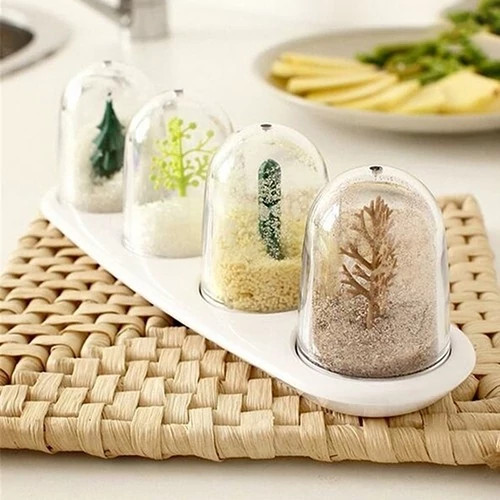 هر ادویه پاش نماد یک فصل به همراه گیاهان مصنوعی داخل محفظه مناسب جهت چیدمان جهیزیه قابل استفاده برای نمک ، فلفل و سایر ادویه ها تولید شده از جنس پلاستیک با کیفیت دارای محفظه کاملاً شفاف سهولت در شست و شو و استفاده سوراخ تعبیه شده بر روی محفظه جهت سهولت در پاشیدن ادویه مناسب جهت استفاده بر روی میز غذا و سفره در منزل ، رستوران و …