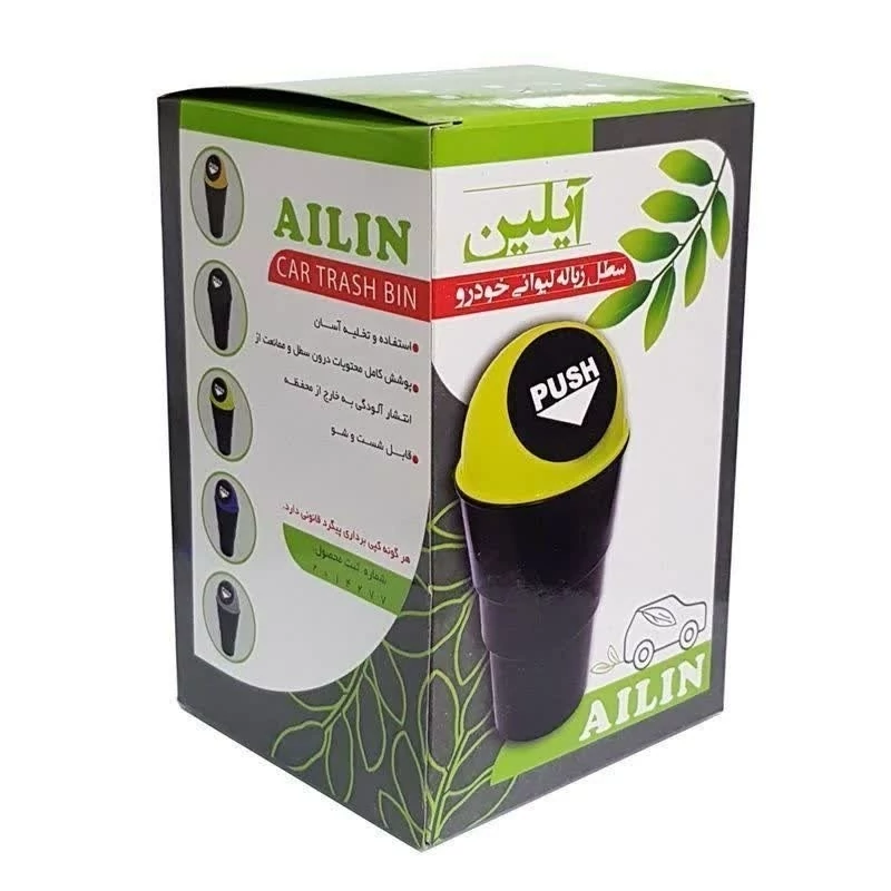 سطل زباله خودرو لیوانی آیلین ، محصولی نوین با طراحی زیبا و کاربردی است . این سطل از جنس پلاستیک با کیفیت تولید شده که وزنی سبک با مقاومت بالا دارد . سطل زباله ماشین به شکل یک لیوان و به صورت استوانه ای برای قرارگیری در جالیوانی کنسول خودرو طراحی شده با این تفاوت که در سه قسمت بالا ، وسط و انتها دارای قطر متفاوت می باشد . کمتر بودن قطر سطل در قسمت پایین امکان قرار گیری آن درون جالیوانی انواع خودرو را محیا می کند و افزایش قطر در دو سطح بعد سبب افزایش گنجایش حجم درون سطل می شود . درب محصول نیز به شکل نیم کره با امکان باز و بسته کردن آسان طراحی شده ، با این حال یک درب آسان بازشو فنری که قابلیت بسته شدن خودکار دارد بر روی درب اصلی تعبیه شده که با فشردن آن درب باز و پس از رها شدن به صورت اتوماتیک بسته می شود . بنابراین به راحتی می توانید زباله را درون سطل قرار دهید بدون اینکه مجبور به باز و بسته کردن درب آن همانند نمونه های معمول باشید ، کمی به سمت داخل فشار دهید ، زباله را رها کنید . بسته شدن اتومات درب مانع از خروج و انتشار آلودگی به بیرون از محفظه می شود . سطل آشغال داخل ماشین دارای بدنه مشکی رنگ و درب نیم کره به رنگ های طوسی ، کرم ، مشکی ، سبز و آبی می باشد که از آنها بسته به سلیقه خود می توانید درون انواع خودرو ها استفاده نمایید . بسیاری از افراد به تمیز بودن داخل ماشین خود نیز مانند بیرون آن اهمیت بالایی می دهند. وسیله های زیادی برای حفظ بهداشت و تمیزی داخل خودرو وجود دارد. سطل زباله خودرو نیز یکی از این وسایل می باشد. زباله هایی که داخل ماشین تولید می شوند نباید به بیرون ریخته بشوند. این کار علاوه بر آسیبی که به محیط زیست می زند، جلوه خوبی نیز ندارد. به همین دلیل استفاده از سطل زباله خودرو پیشنهاد می شود.