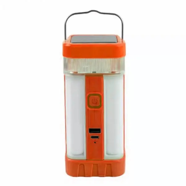 این چراغ کمپینگ دارای پنل خورشیدی داخلی برای شارژ است.