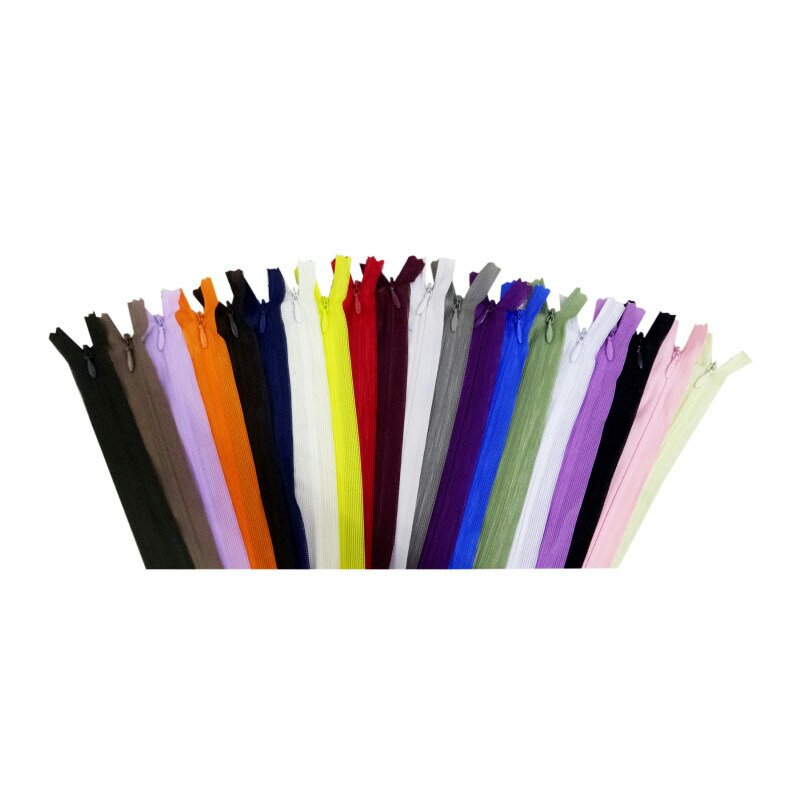 این بسته شامل ۲۰ عدد زیپ مخفی ۲۰ سانتیمتری رنگی است،این محصول از کیفیت بسیار بالایی برخوردار است و رنگهای این بسته دقیقا مطابق عکس میباشد و تغییر نمیکند؛ رنگ بندی این محصول به ترتیب از سمت راست: لیمویی،گلبهی،مشکی،یاسی،سفید،کاهویی،کاربنی،بادمجانی،موشی،طوسی استخوانی،زرشکی تیره،قرمز،زرد،شیری،سرمه ای،قهوه ای تیره،نارنجی،یاسی روشن،کرم خاکی،سبز زیتونی می باشد.این نوع زیپ به جهت تولید پوشاک زنانه،دامن،شلوار و ...به کارگیری میشود.